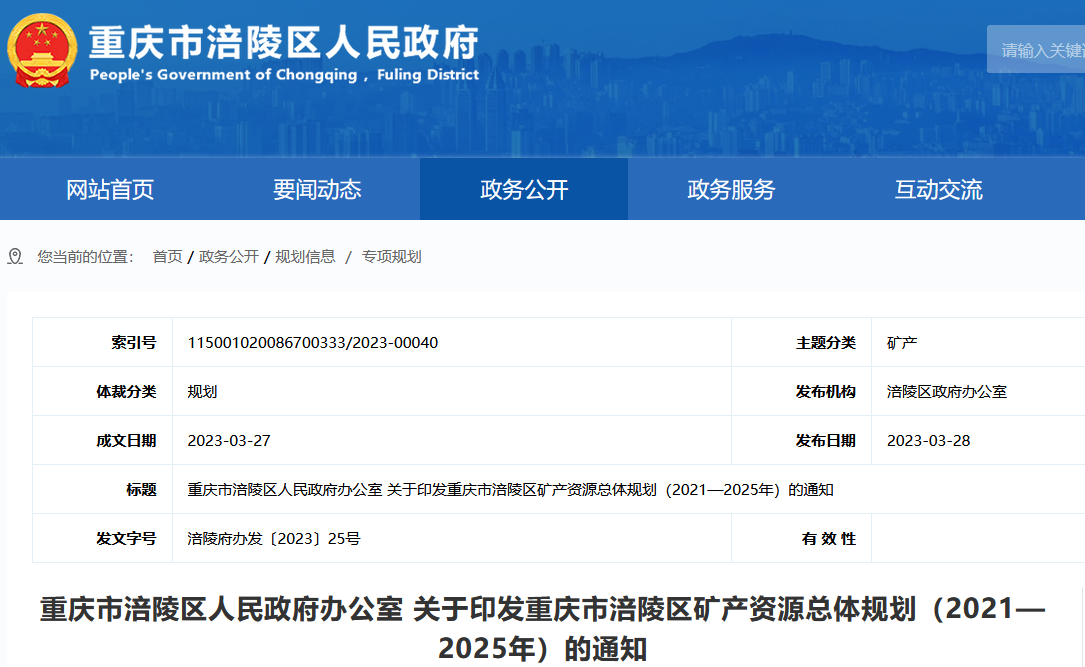 近日,重慶市涪陵區人民政府印發重慶市涪陵區礦產資源總體規劃(2021—2025年)。到2025年,在集中開采區布局1~2個年產千萬噸級的超大型機制砂石生產基地,集中開采區外布局1個大型骨干型礦山,提升礦產資源的有效供應,并補充城鎮、園區及鄉村振興建設所需的砂、頁巖礦。到2025年,建筑用砂石年開采總量達到2450萬噸。