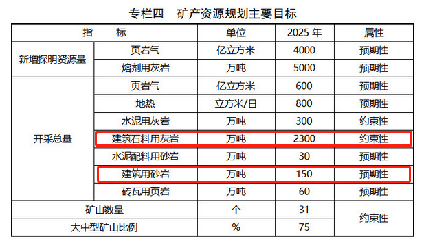 ——嚴控礦山數量。以建筑用砂石等礦產為重點,嚴格控制水泥用灰巖礦新設,合理控制建筑石料用灰巖礦山新設,實行礦山數量與開采總量雙控。到2025年,礦種控制:水泥用灰巖2個、建筑石料用灰巖礦山16個以內,全區礦山總數控制在31個以內。