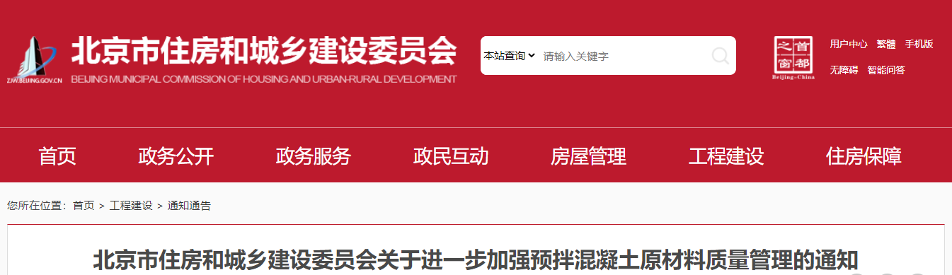 近日,北京市住房和城鄉建設委員會發布《關于進一步加強預拌混凝土原材料質量管理的通知》(以下簡稱《通知》)。通知提出: