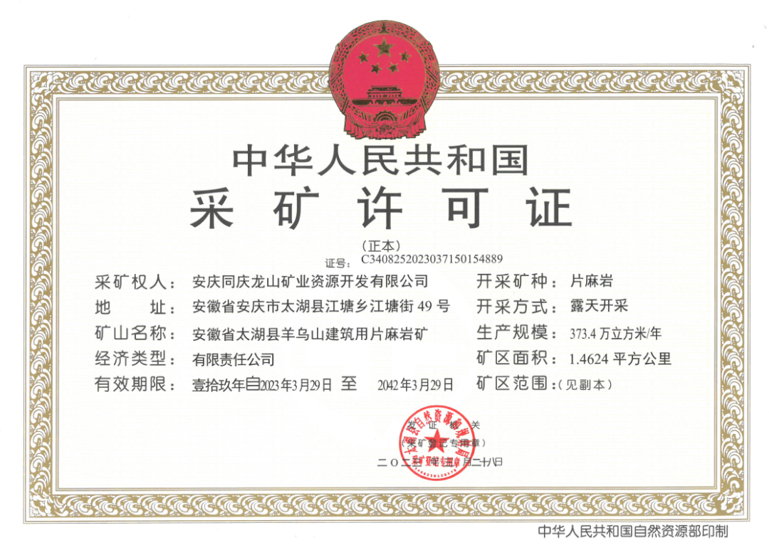 據悉,采礦許可證是采礦權人行使開采礦產資源權利的法律憑證,由采礦登記機關授予采礦權申請人開采礦產資源的許可證明。太湖羊烏山礦采礦許可證取得,為該礦后期林地報批、土地征用等行政許可手續奠定了堅實基礎。