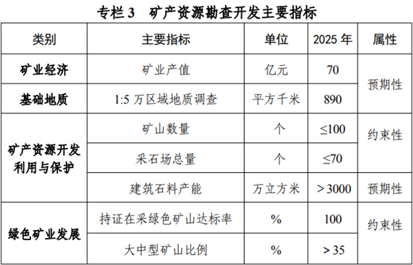 規劃礦山規模以大中型為主,小型僅適宜在大中型礦山難以開采的地區開發。新建礦山生產規模應與資源量規模相適應,且必須達到最低開采規模要求。集中開采區內明確采礦權投放總量、投放時序、最低開采規模、安全距離、生態保護等準入條件,引導礦山企業規模化開采、集約化經營。