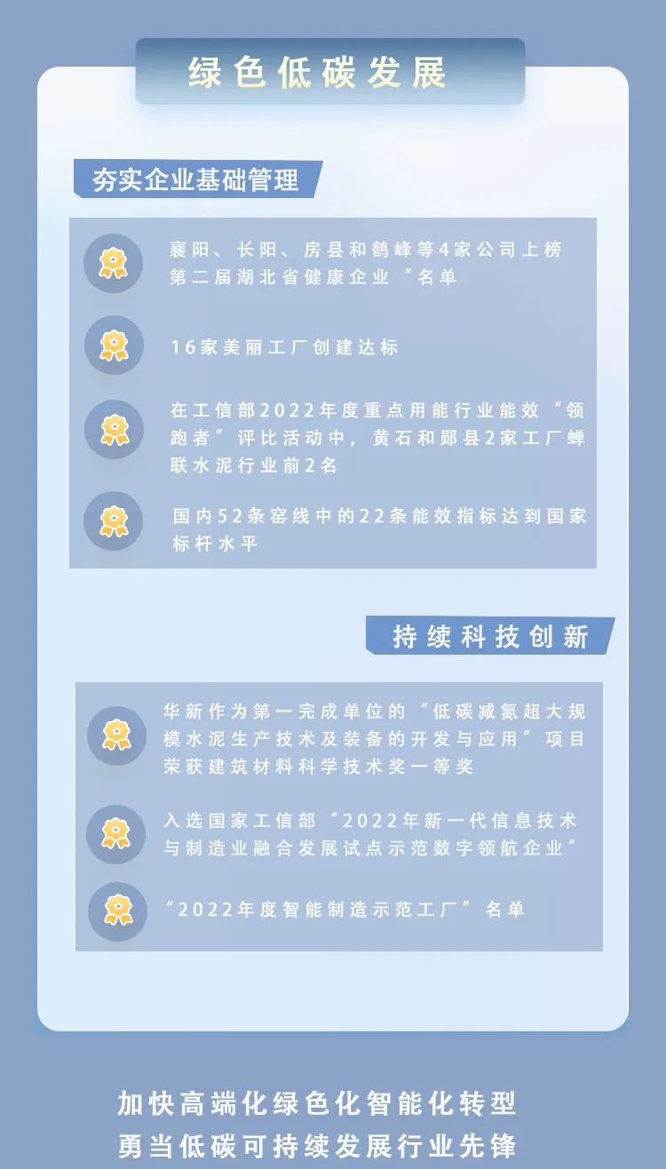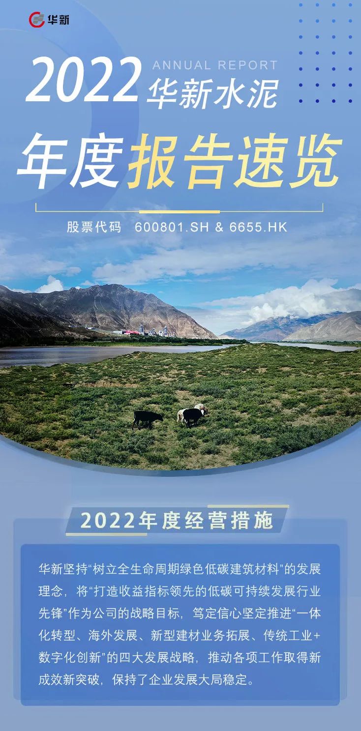 展望2023年,華新水泥表示,其將統一思想、明確目標、找準路徑、堅決落實,深化實施“一體化轉型發展、海外發展、新型建材業務拓展、傳統工業+數字化創新”四大戰略,加快高端化、綠色化、智能化轉型,勇當低碳可持續發展行業先鋒,推動百年華新從國內行業領先向世界一流企業邁進。