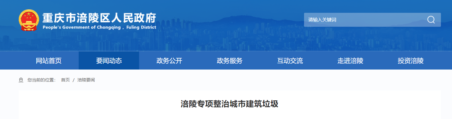 近日,重慶市涪陵區啟動2023年城市建筑垃圾專項整治,建立健全建筑垃圾從產生、運輸到處置環節“兩點一線”全過程聯合監管機制,全面有效維護城市建筑垃圾管理秩序,保障市容環境衛生干凈整潔,促進空氣質量持續向好,增強市民群眾的幸福感、獲得感、安全感。