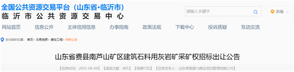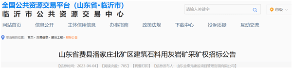 近日,山東省臨沂市公共資源交易中心發布2宗建筑用砂礦采礦權招標公告。這2宗礦儲量共7472.4萬噸,合計年產能410萬噸,起拍價共27588.56萬元(2.76億元)。投標文件遞交截止時間皆為2023年5月6日9時,且不接受聯合體投標。