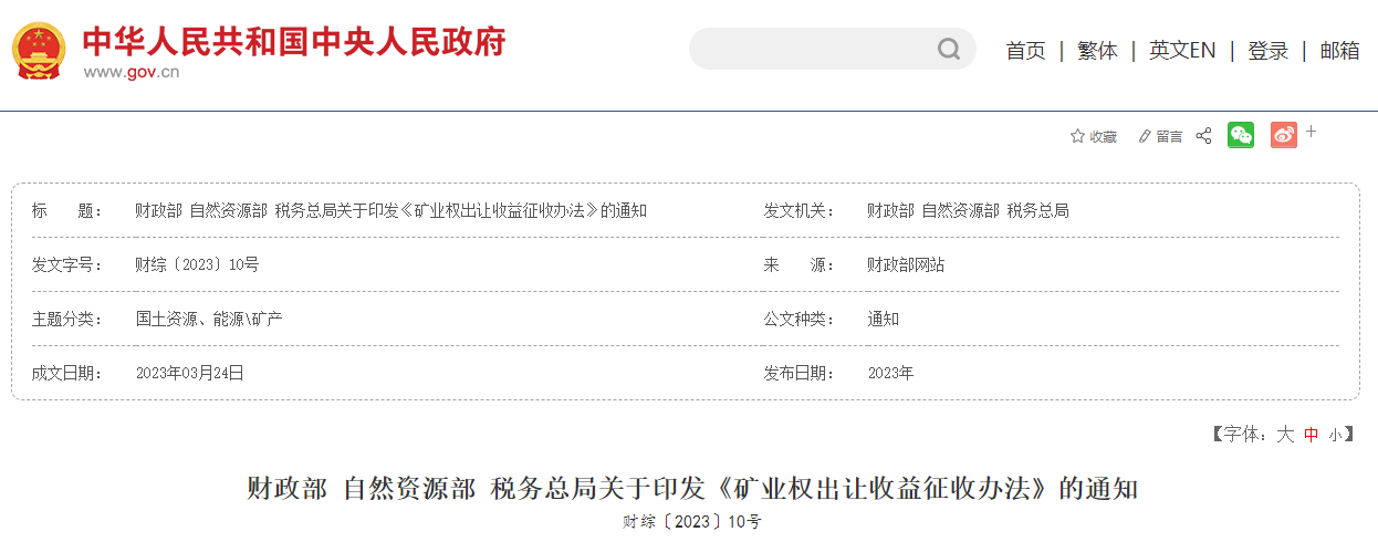 近日,財政部、自然資源部、稅務總局修訂印發《礦業權出讓收益征收辦法》(以下簡稱《辦法》)。