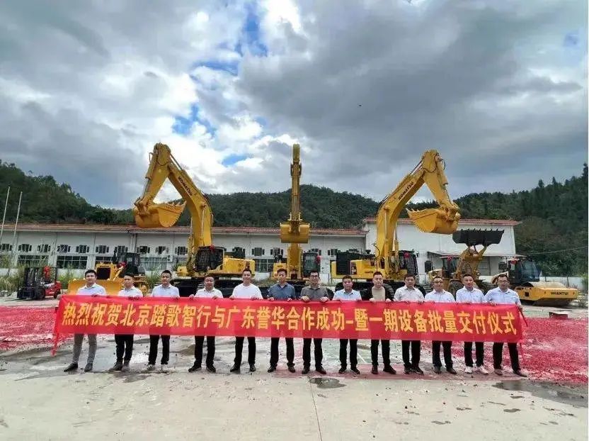 砂石骨料礦現(xiàn)場,舉行了無人運輸運營項目首批工程機械設備進場交接儀式,宏大爆破、踏歌智行、廣東譽華還就后續(xù)共同高效推進大排砂石骨料礦無人駕駛項目進行了細致部署。
