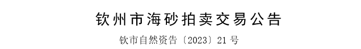 根據《中華人民共和國民法典》、《中華人民共和國拍賣法》等相關法律法規及《廣西壯族自治區自然資源廳關于推進礦產資源管理改革有關事項的通知》(桂自然資規[2020]1號)規定,經欽州市人民政府批準,我局決定以拍賣方式對以下海砂進行交易。現就有關拍賣事項公告如下: