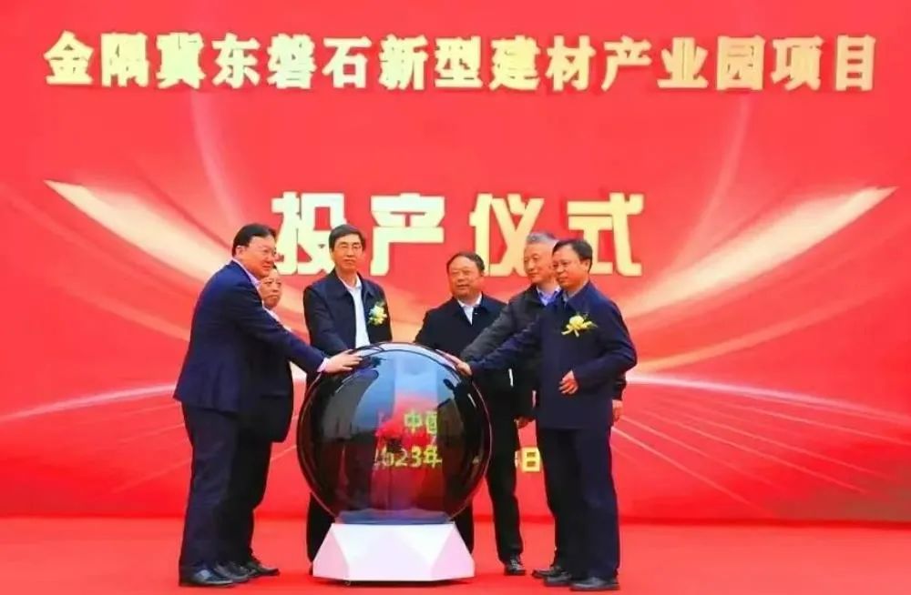 4月28日,姜英武一行和吉林省工信廳副廳長韓增堯,省環保廳總工程師陳明輝,吉林市委常委、磐石市委書記于技群等領導共同出席磐石新型建材產業園項目投產儀式。