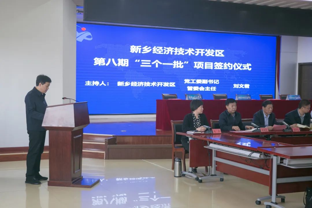 本次簽約儀式活動(dòng)由新鄉(xiāng)經(jīng)開區(qū)管委會(huì)副主任侯海濤牽頭,西新鄉(xiāng)經(jīng)濟(jì)技術(shù)開發(fā)區(qū)黨工委副書記、管委會(huì)主任劉文君上臺(tái)主持簽約儀式,新鄉(xiāng)經(jīng)濟(jì)技術(shù)開發(fā)區(qū)黨工委書記王景書上臺(tái)致辭。