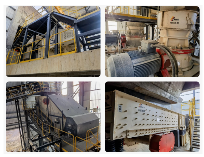 顎式破碎機,預篩分和中細碎車間設備采用2YKR1645H篩分機、HPF1260振動給料機、CC300EC單缸液壓