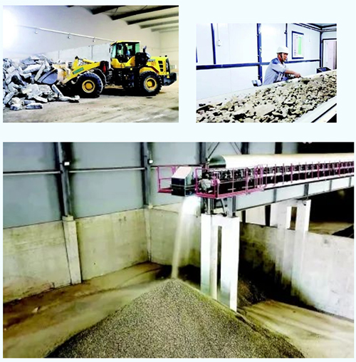 在破碎生產(chǎn)區(qū),機(jī)械流水線有條不紊運(yùn)行。