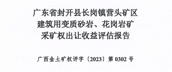 5月9日,廣東省肇慶市封開縣自然資源局對長崗鎮營頭礦區建筑用變質砂巖、花崗巖礦采礦權出讓收益評估報告進行公示,擬對該礦進行出讓。據報告顯示,該礦資源儲量3498.38萬方,生產規模200萬方/年,出讓年限18.17年(含2年建設期)。出讓收益評估46679.48萬元(約5億元)。