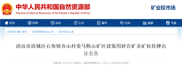 該礦位于廣東省清遠市清城區源潭鎮,面積0.7167平方千米,可采儲量為6974.84萬方,年產規模300萬方/年,擬出讓年限21.8年,起始價7.8億元。另外,