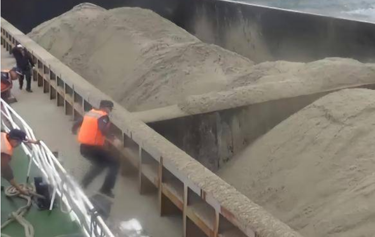 圖為嫌疑人指認所運載的海砂。 福州海警局供圖