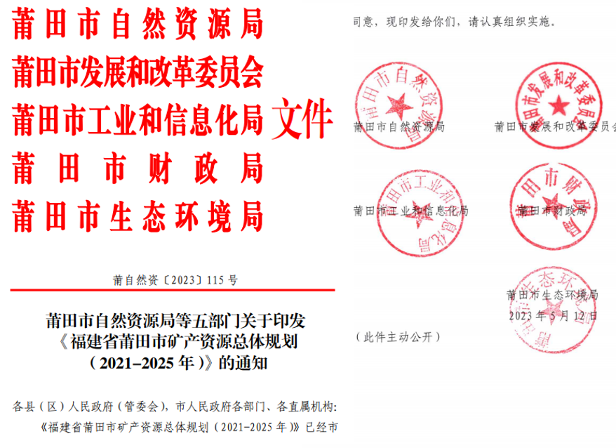 近日,經福建省自然資源廳審查,莆田市人民政府同意,《福建省莆田市礦產資源總體規劃(2021-2025年)》(以下簡稱《規劃》)正式印發實施。《規劃》中指出,莆田市按照“東拓南進西聯北優中修”發展戰略,形成“兩軸兩廊”綜合交通運 、輸大通道發展布局,以及城鎮建設規模不斷擴大,對礦產資源特別是普通建筑用砂石等礦產的需求不減。同時莆田陸地港、 羅嶼港口等項目建設,對海砂資源也有一定的市場需求。莆田要充分利用本地優勢開采砂石資源,以滿足經濟發展對砂石資源的需求,切實保障港口、鐵路、高速公路、國省干線、疏 港道路等交通基礎設施建設,滿足國民經濟的發展需求。