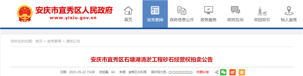 超10億元起拍 安徽安慶拍賣出讓一批清淤砂石