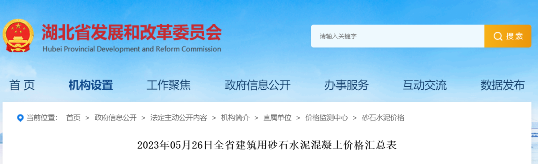 中國砂石協會從湖北省發改委了解到,2023年5月26日湖北發布全省建筑用砂石水泥混凝土價格匯總報表,報表顯示: