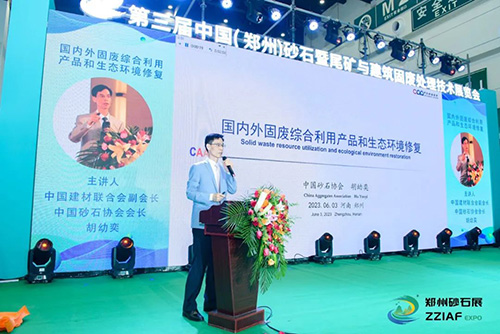 在峰會(huì)論壇中,原國(guó)土資源部調(diào)控和監(jiān)測(cè)司司長(zhǎng)劉隨臣、河南省自然資源廳二級(jí)巡視員馮進(jìn)城發(fā)表了致辭,中國(guó)砂石協(xié)會(huì)會(huì)長(zhǎng)胡幼奕就《國(guó)內(nèi)外固廢綜合利用產(chǎn)品和生態(tài)環(huán)境修復(fù)》主題發(fā)布了專(zhuān)項(xiàng)演講。