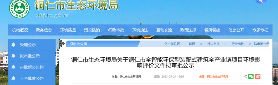 貴州省銅仁市生態(tài)環(huán)境局對(duì)銅仁市全智能環(huán)保型裝配式建筑全產(chǎn)業(yè)鏈項(xiàng)目環(huán)境影響評(píng)價(jià)文件擬評(píng)審公示。項(xiàng)目總投資7.31億元,年產(chǎn)精品骨料540萬噸,分2期建設(shè),預(yù)計(jì)2023年6月正式開工,總工期24個(gè)月。