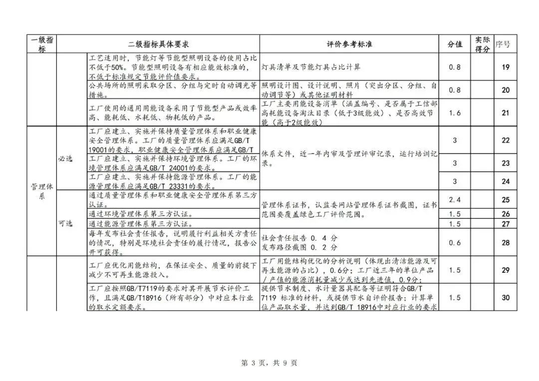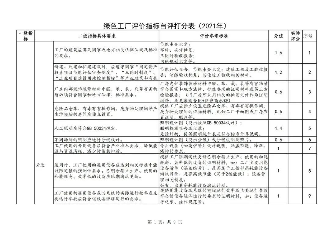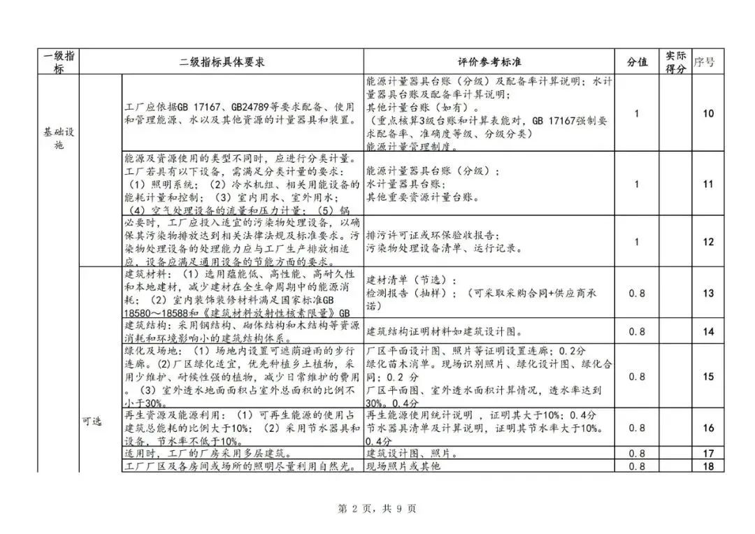 工信部發布的《關于開展綠色制造體系建設的通知》對綠色工廠評價指標框架、評價依據、評價方式、評價指標要求做了具體闡述。
