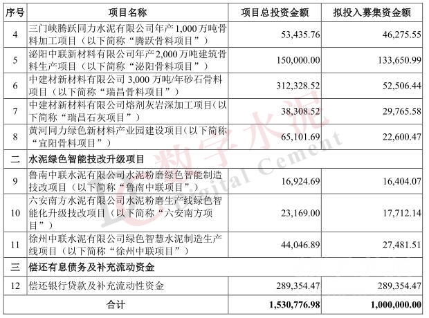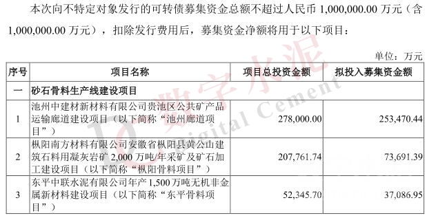 近期,根據天山股份發布的關于新疆天山水泥股份有限公司申請向不特定對象發行可轉換公司債券的第二輪審核問詢函回復報告顯示,天山股份擬募資71億元建設8個千萬噸砂石骨料項目和3個水泥綠色智能技改升級項目。其中3個水泥綠色智能技改升級項目已開工建設,8個砂石骨料項目擬募資約65億元。