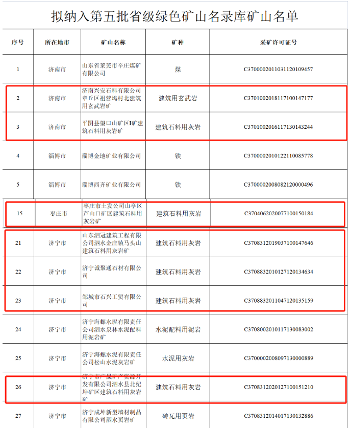 據(jù)悉,山東省自然資源廳關(guān)于擬納入第五批省級綠色礦山名錄庫礦山名單的公示。共有63家礦山通過遴選,其中包括濟(jì)南興安石料有限公司章丘區(qū)祖營塢村北建筑用玄武巖礦、平陰縣望口山礦區(qū)Ⅰ礦建筑石料用灰?guī)r礦在內(nèi)的19家砂石礦山擬納入第五批省級綠色礦山名錄庫。公示期自發(fā)布之日起7個工作日。