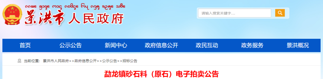 勐龍鎮(zhèn)砂石料(原石)電子拍賣公告