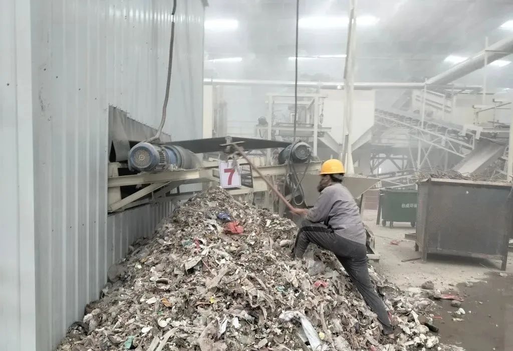 機(jī)械設(shè)備正將成堆的垃圾進(jìn)行預(yù)分選。