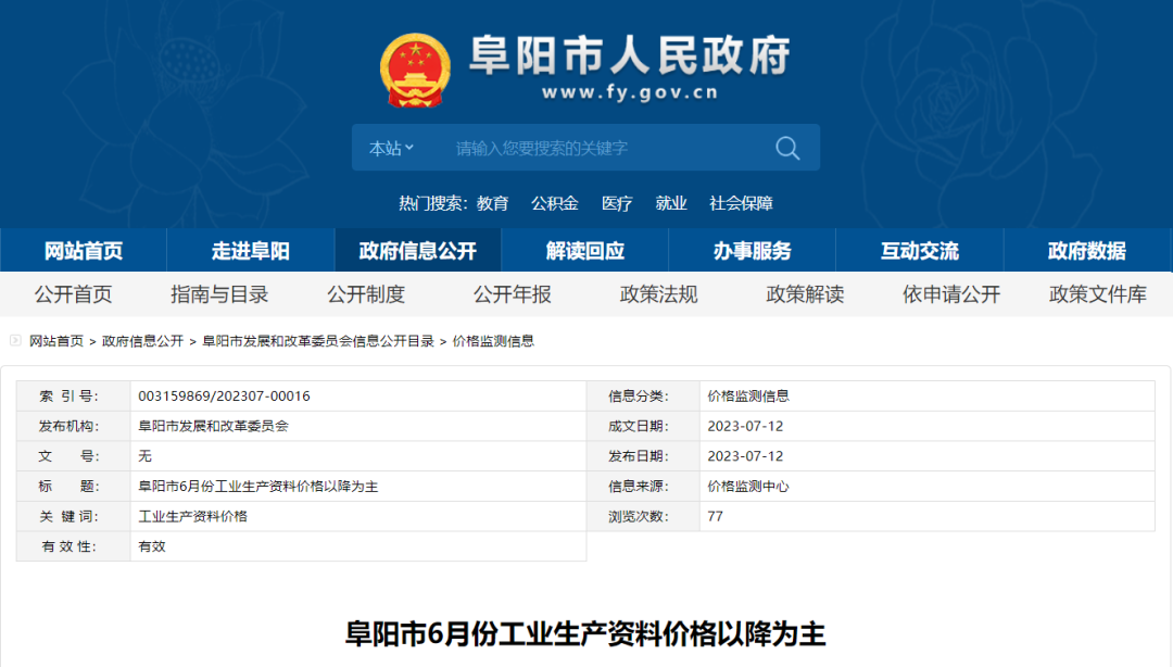 近日,阜陽市發改委發布6月份工業生產價格,據監測,6月份,安徽阜陽市監測點工業生產資料價格整體仍保持弱勢運行,重點監測的25個品種價格環比3漲15降7平。其中,6月份機制砂價格為120元/噸,環比下降4%。具體價格情況如下: