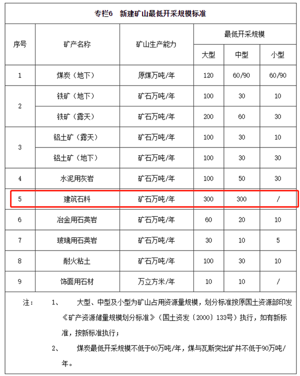 砂石供應格局及要求,新設建筑石料礦山開采規模不低于300萬噸/年。
