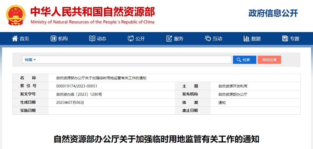 自然資源部辦公廳關于加強臨時用地監管有關工作的通知
