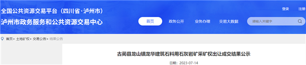 近日,蜀道鐵路投資集團所屬新材料(古藺)公司以6400萬元成功競得四川省瀘州市古藺縣龍山鎮龍華建筑石料用石灰巖礦。該礦資源儲量4698.3萬噸,年產300萬噸,出讓11.5年。