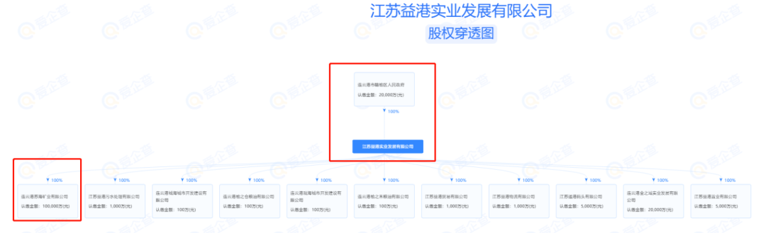 根據愛企查數據顯示,連云港蘇海礦業有限公司成立于2023年04月21日,是江蘇益港實業發展有限公司100%控股子公司,江蘇益港實業發展有限公司背后實際控制人是連云港市贛榆區人民政府。
