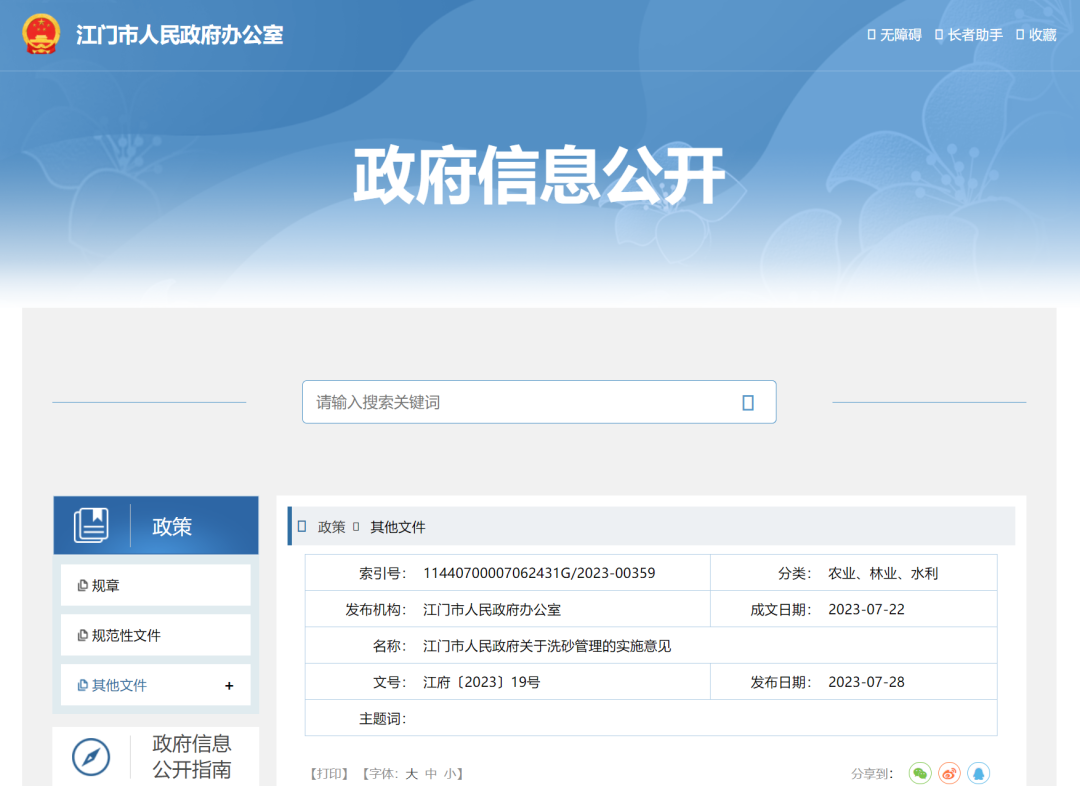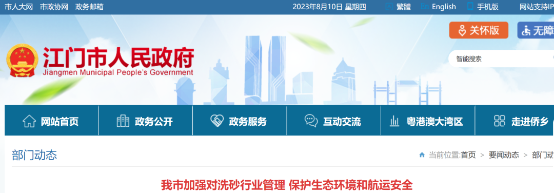 近日,廣東江門市發(fā)布了《江門市人民政府關(guān)于洗砂管理的實(shí)施意見》(以下簡稱《實(shí)施意見》),旨在加強(qiáng)對洗砂行業(yè)的管理,遏制非法洗砂行為,促進(jìn)綠色健康發(fā)展,保護(hù)生態(tài)環(huán)境和航運(yùn)安全。