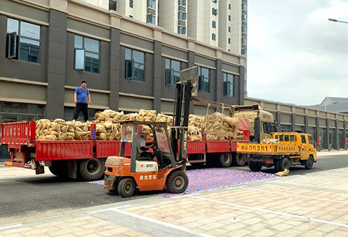 隨著訂單量的日益增長,為提升配送效率,及時保障居民家裝用砂需求,贛昌砂石公司及時召開平價砂石配送保供專題會議,通過會議討論探索出了新的配送模式,即在用砂需求集中且用砂量較大的小區(qū)內(nèi)設立一個流動轉(zhuǎn)運點,安排載重量較大的半掛車將袋裝砂石從配送站點轉(zhuǎn)運至流動轉(zhuǎn)運點,再由載重量較小的配送車輛分裝送到客戶家中,極大提升了配送效率。