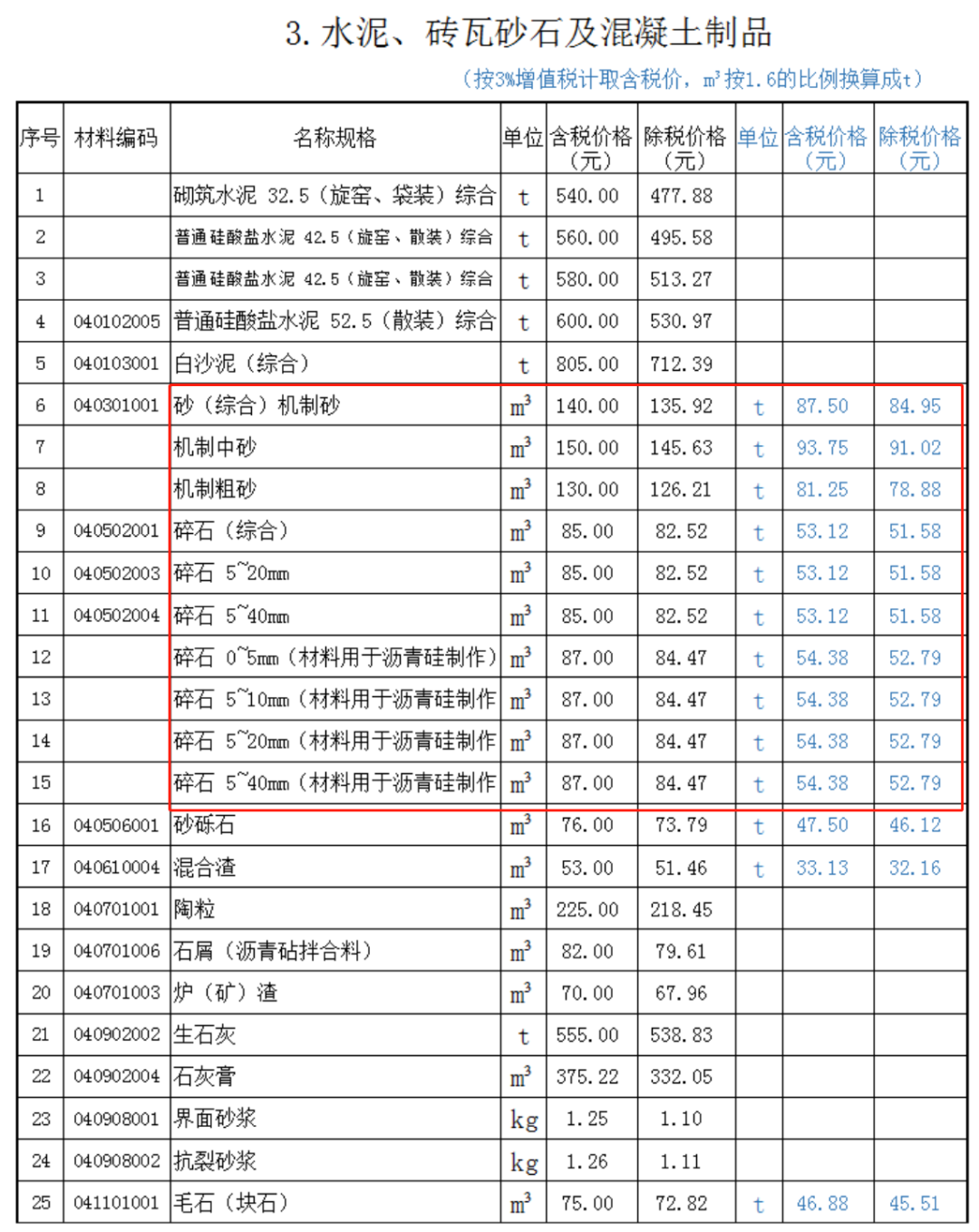 根據(jù)柳州市建設(shè)工程造價(jià)信息顯示,砂石的價(jià)格如下: