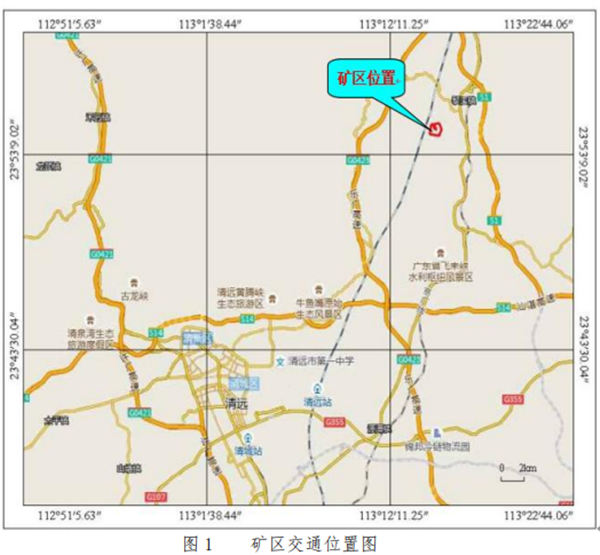 礦區(qū)內(nèi)部道路主要為當(dāng)?shù)卮迕耧曫B(yǎng)牲畜、砍伐樹木遺留的簡易道路,可與礦區(qū)北側(cè)縣道X367相連,相距約1.85千米,穿過黎溪大橋可與礦區(qū)東側(cè)國道G240相通,相距約1.76千米。礦區(qū)可利用的主要道路分別位于礦區(qū)東西兩側(cè),礦區(qū)東側(cè)為廣連高速(S1),最近的高速入口為黎溪北,相距約5千米。礦區(qū)西側(cè)為樂廣高速(G0423),最近的高速入口為黎溪,相距約6.2千米。沿省道、高速公路往南可達廣州、佛山等城市,往北可至韶關(guān)市。