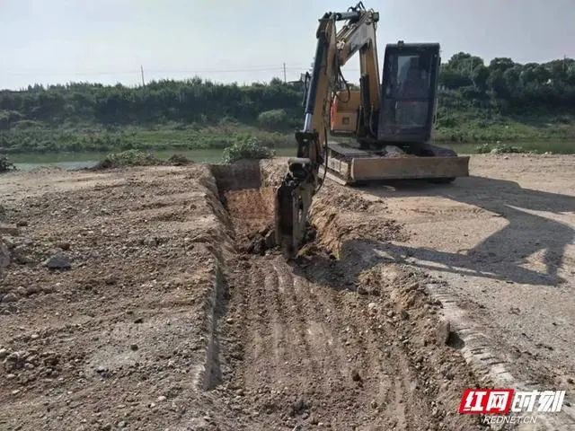 挖掘機(jī)對(duì)砂石運(yùn)輸車(chē)進(jìn)出道路進(jìn)行物理隔斷。