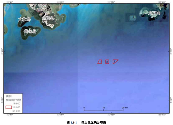 根據(jù)規(guī)劃,珠海市自然資源局在高欄島東南側(cè)約30千米海域設(shè)置了3個海砂資源擬出讓區(qū)塊,面積總共為8.8平方千米,其中1號砂區(qū)面積約為2.8平方千米、2號砂區(qū)面積約為3平方千米、3號砂區(qū)面積約為3平方千米。