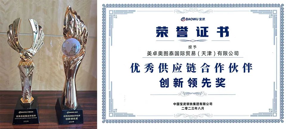 美卓獲得寶武集團(tuán)授予的“優(yōu)秀供應(yīng)鏈合作伙伴“獎杯與證書