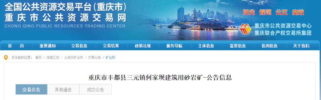 ——本次擬出讓采礦權是2021年11月29日我局在豐都縣公共資源交易中心舉辦的出讓活動中,受讓方以4580.00萬元獲得的采礦權后未按成交確認書簽訂《采礦權出讓合同》,導致出讓失敗的再次公開出讓;——競得人競得以上采礦權后,還需向出讓人在重慶市網(wǎng)上中介服務超市選取的中介機構指定賬戶支付采礦權出讓工作成本11.28萬元;——有關該宗采礦權的用地、用水、用電、公路、環(huán)保、基礎設施等工作,由競得人自行負責解決并依法完善相關手續(xù);據(jù)中國