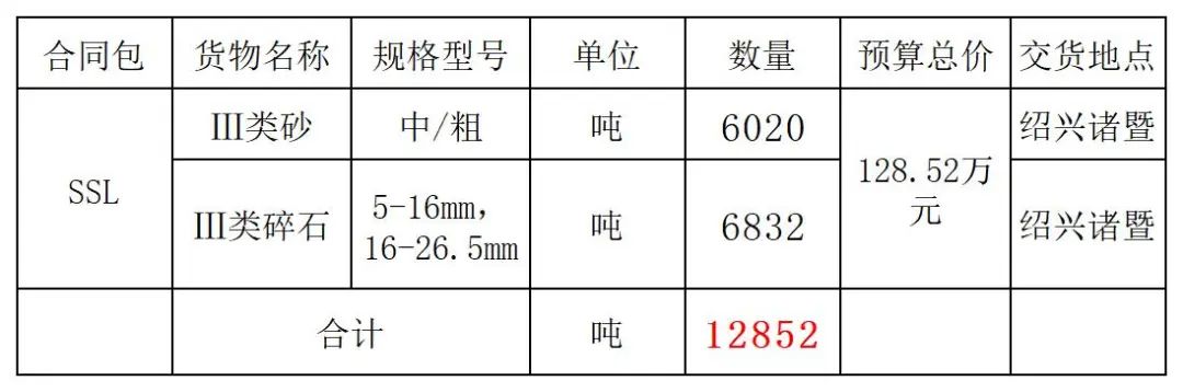 另外,此次采購的砂石料交貨期為2023年9月-12月;質(zhì)量標準或主要技術(shù)性能指標應(yīng)符合《建設(shè)用砂》GB/T14684-2022、《建設(shè)用卵石、碎石》GB/T14685-2022及其引用相關(guān)規(guī)范、標準。