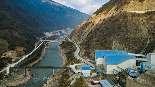 2021年底,云統(tǒng)工程師奔赴遠(yuǎn)在云南的項(xiàng)目現(xiàn)場(chǎng),與寒冷相伴的,是現(xiàn)場(chǎng)嚴(yán)苛的施工條件。山谷狹窄,可用地形有限,為高效利用現(xiàn)場(chǎng)空間,中電建水利水電第七工程局有限公司(以下簡(jiǎn)稱(chēng)“水電七局”)為T(mén)B項(xiàng)目創(chuàng)新應(yīng)用水電工程中極其少見(jiàn)的線(xiàn)性布置方式,左岸加工區(qū)、右岸成品料堆場(chǎng)沿江分開(kāi)布置,跨江貝雷橋搭載長(zhǎng)達(dá)2公里的長(zhǎng)膠傳送廊道橫跨奔騰的江水連接兩岸,承載著砂石輸送的重要任務(wù)。