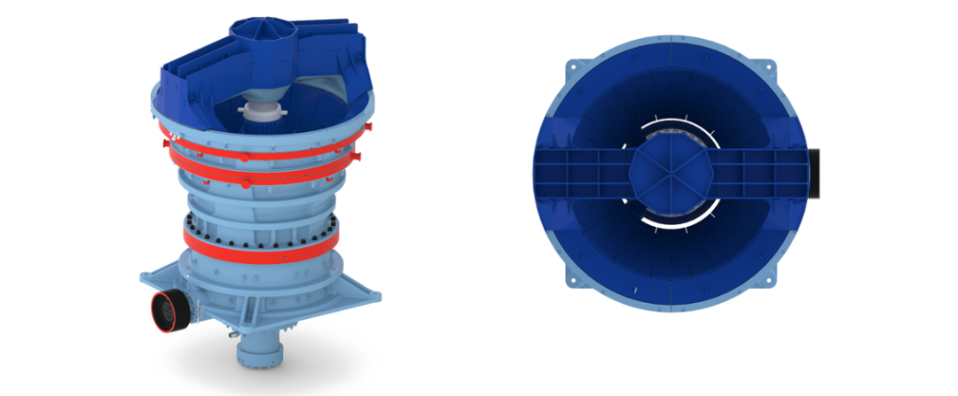 主軸整體鍛造,避免動錐松動風險。上部軸頸與錐體過渡部位,大半徑拋光圓角, 增加了抗疲勞強度,同時經(jīng)過軟件模擬保證留有足夠安全系數(shù)。