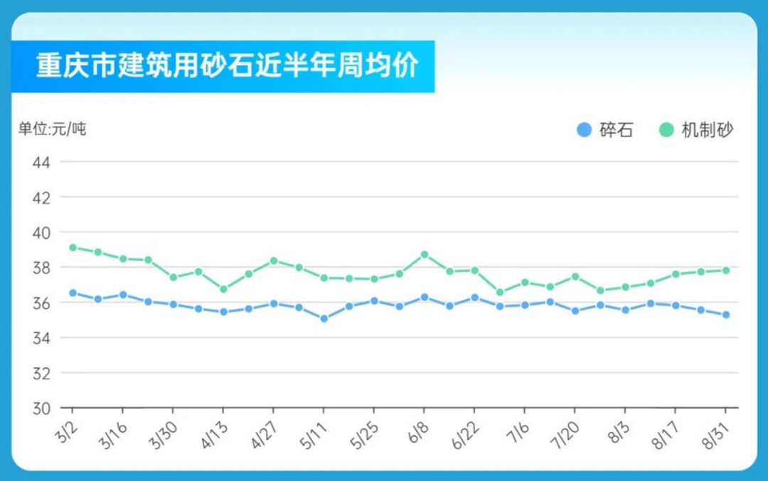 碎石35.25元/噸、機(jī)制砂37.77元/噸,“金九銀十” 能否助力渝地砂石價(jià)格能否順勢(shì)上浮