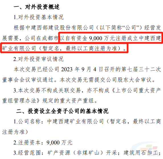 擬設(shè)立中建西建礦業(yè)有限公司只是公司加強(qiáng)培育