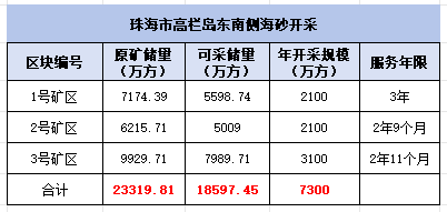 同日,廣東省生態(tài)環(huán)境廳公示珠海市高欄島東南側(cè)1、2、3號(hào)礦區(qū)海砂開采環(huán)境影響報(bào)告書受理公告。據(jù)環(huán)評(píng)公示,3宗海砂原礦體積合計(jì)超2.3億方、可采資源儲(chǔ)量超1.8億方,年生產(chǎn)規(guī)模7300萬方。服務(wù)年產(chǎn)2年9個(gè)月-3年不等。(具體點(diǎn)擊:《儲(chǔ)量超2.3億方!廣東珠海3宗海砂開采項(xiàng)目明確儲(chǔ)量和開采規(guī)模》)。