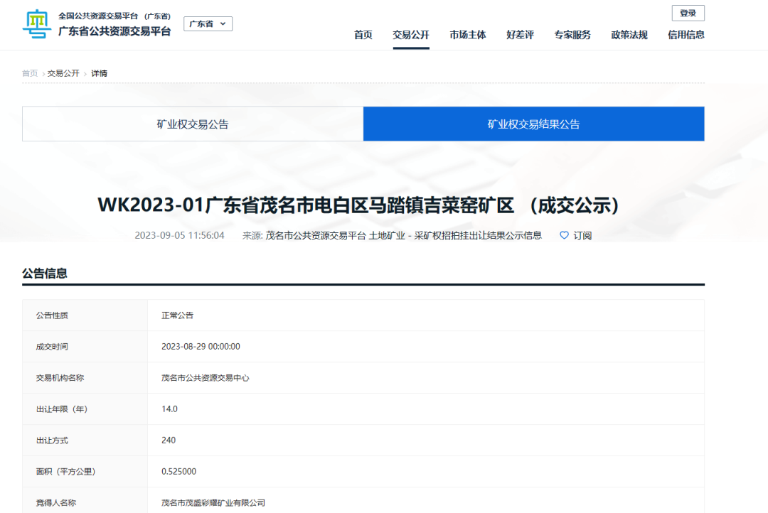 競得人:茂名市茂盛彩耀礦業(yè)有限公司