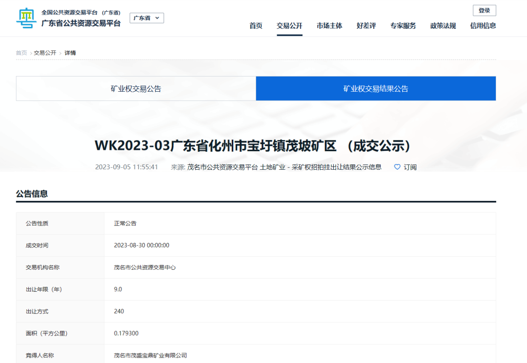 競得人:茂名市茂盛寶鼎礦業(yè)有限公司