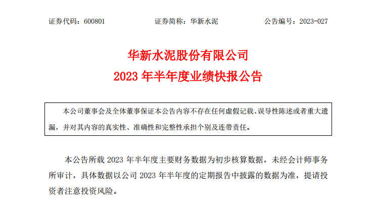 從華新水泥上半年公告可以看出,華新水泥